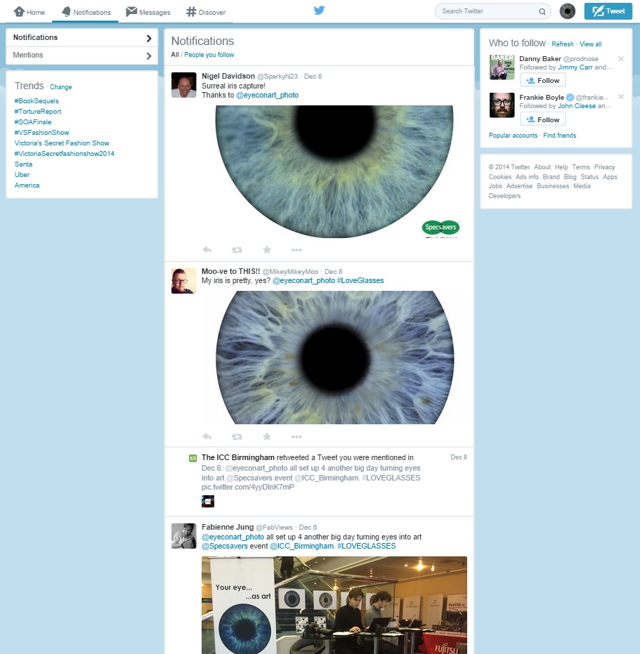 “By far the most popular stand at the event. There were queues of people comparing eyes and bringing their friends over to be photographed”